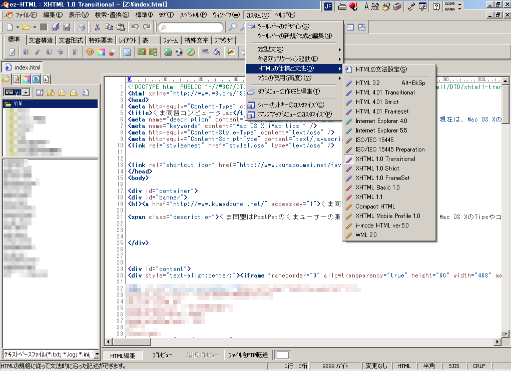 ez-htmlで新規作成するとHTML4.01になりXHTMLにならない(任意の形式にしたい)