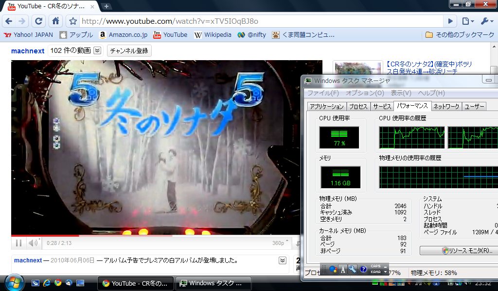 また、Flash10.0以前だとIntel Atomを搭載したN10JでHD動画を再生するのはスペック的にかなりきつく、コマ落ちすることも多かったですが、Flash10.1では30~50%の負荷で再生に全く問題ありません。