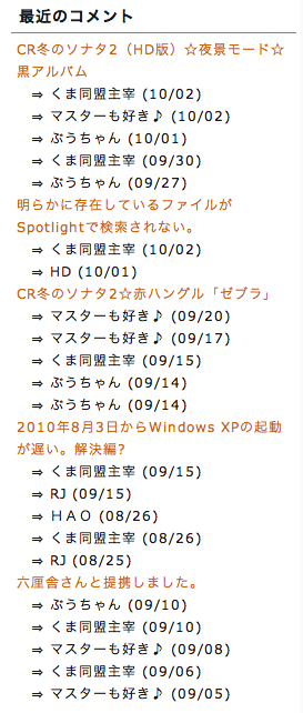 コメント欄に関してはさくらのブログ(Seesaa)の方が、記事のタイトル、コメントした人の名前、日付がわかって見やすいです。