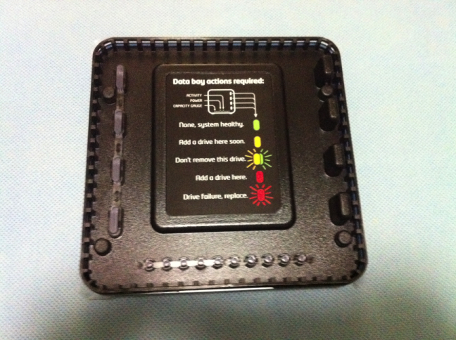 Drobo Dashboard(管理ソフト)をインストールし、ケースにハードディスクを差し込もうと前面の蓋を開けようとしたら、蓋は磁石でくっついていました。