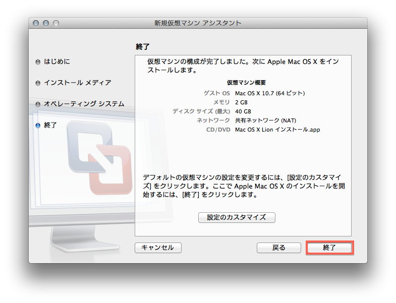 Mac OS X 10.7 LionをVMware Fusion 4上にゲストOSとしてインストールする