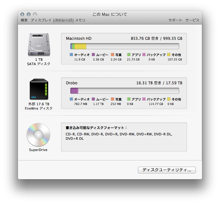 Mac OS X 10.7 Lion 以降はTime Machineで使用しているバックアップの容量を確認することができます。