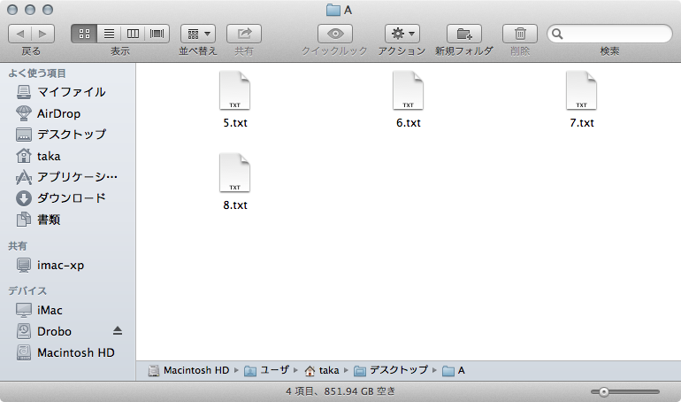 CドライブのルートのAフォルダには「1.txt〜8.txt」まで8つのファイルが存在します。